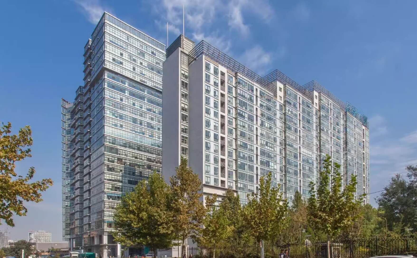 商务公寓的设计充分考虑中关村地区客户需求,外立面设计简洁现代,公共部位装修高档,客户定位在中关村地区的成长型企业,行业分布以IT业为主,传媒、广告、律师事务所、会计师事务所、贸易、专业服务业等为辅。写字楼位于项目的西北角,分为A、B、C三栋,A栋总建筑面积约为2万平米,地上24层,标准层建筑面积约880平米左右,拥有独立大堂和独立的设备系统。
